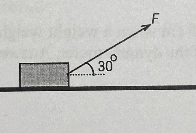 4. A box is dragged along the ground. The pulling force F is 200 N and forms a 30 degree