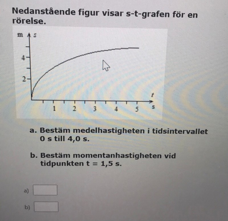 Bestäm medelhastigheten i tidsintervallet 0 s till 4,0 s.