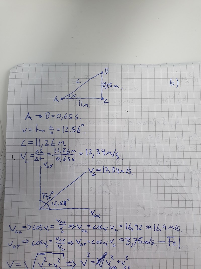 V0x komposanten har jag bestämt till v = 16.9 m/s.