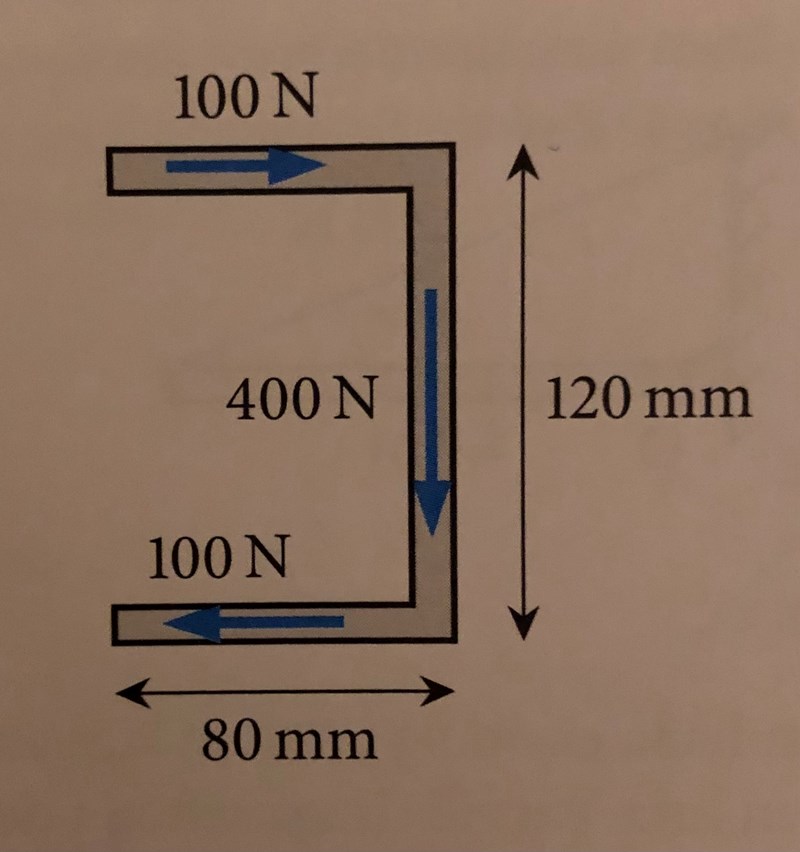 Jag tänkte från början att de "tar ut" varandra och lämnar 400 N riktat nedåt, men enligt facit ska denna kraft befinna sig 30 mm höger om den ursprungliga 400N-kraften. Det är där jag fastnar.