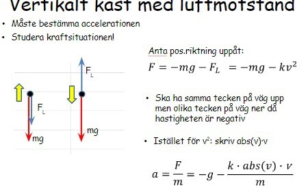 Fysik 3: Numerisk Metod för kaströrelse med luftmotstånd