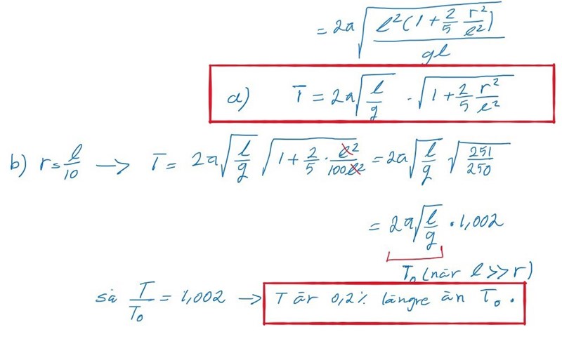 b) Visa att svängningstiden vid små utslag ges av 2π2l3g