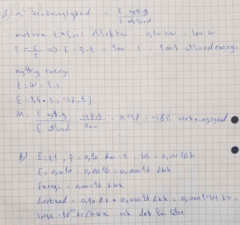 Vad är det du behäver veta för att kunna räkna ut verkningsgraden för motorn?