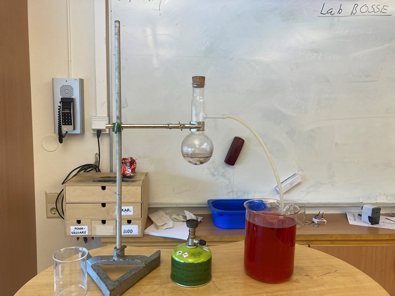 Hej! jag behöver hjälp med detta experiment. jag behöver en slutsats, resten av labbrapporten är klar. jag behöver inte en super noggrann utan renskriver såklart själv. så här gick det till: När man sätter på brännaren börjar det direkt bubbla i bägaren med färgat vatten. Efter ett tag börjar det koka i rundkolven. det slutar då bubbla i bägaren och istället smattrar det. När bägaren stängs av helt sugs det färgade vattnet upp i rundkolven med mycket kraft. det sprutar verkligen i den. Det färgade vattnet är egentligen vanligt vatten men det är färgat för att göra experimentet tydligare. inga andra kemikalier användes, bara det vi kan se. Min lärare vill inte hjälpa men det vi vet är att man ska tänka på det som ligger inuti rundkolven. jag har funderat på om det har någonting med över- och undertryck att göra då det är områdena vi håller på med just nu. All hjälp är uppskattad!