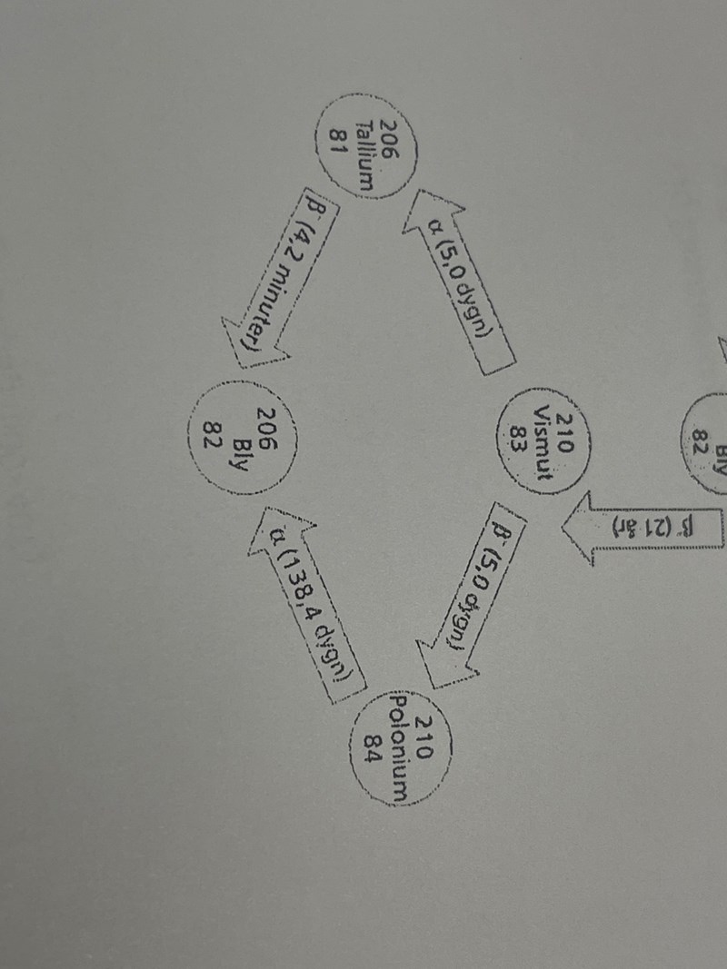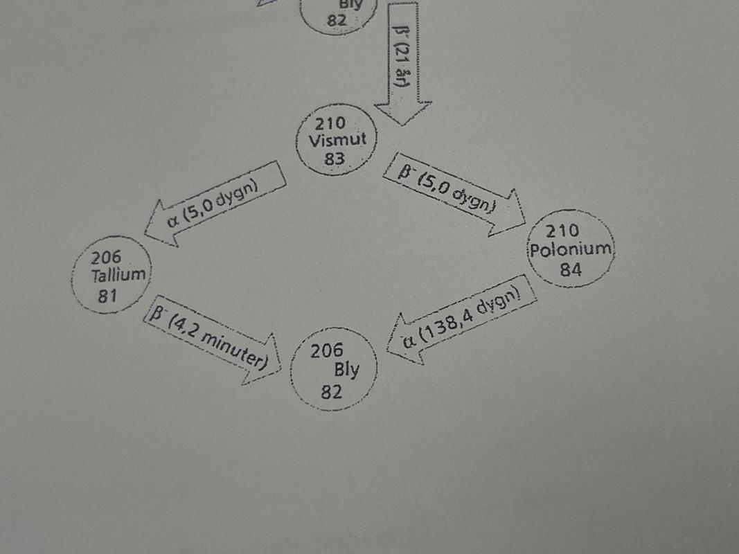 Det är ju två olika sönderfall i sista ledet som leder till Bly-206. Ett alfas-önderfall och ett betaminus-sönderfall.