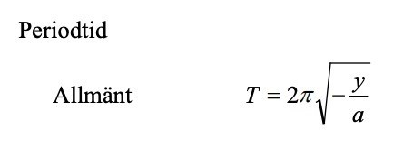 Visst, det gäller ju att accelerationen men det tog mig lite tid att tolka formeln. Den är inte användbar för att bestämma periodtiden.
