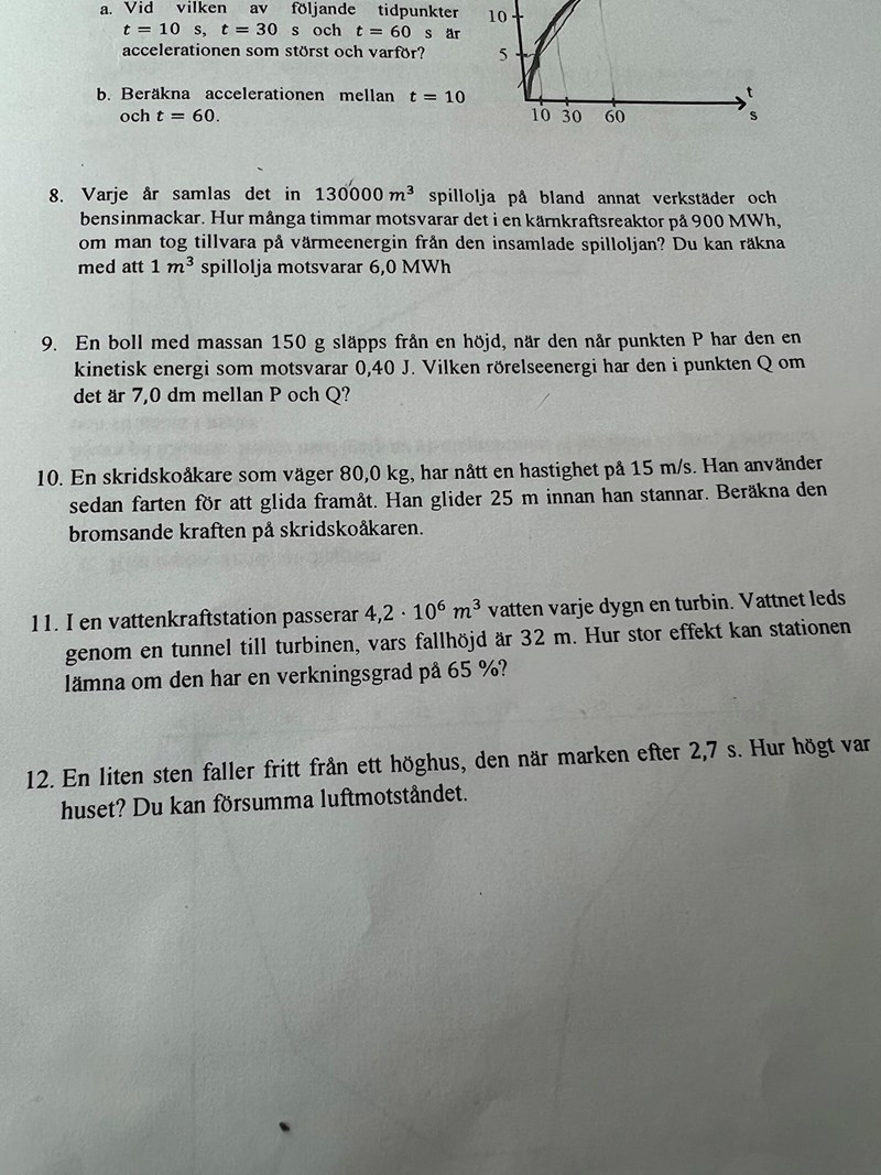 Kan någon hjälpa med mig med fråga 9:e? Jag vet bara att formler för potentiell energi kommer användas inget mer. Är tacksam om lösningen kan visas med en bild, jag har själv försökt men kommer ingen vart. Tack!
