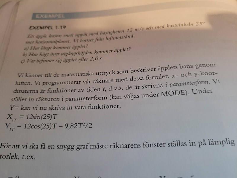 Ett äpple kastas snett uppåt med hastigheten 12 m/s och med kastvinkeln 25° mot horisontalplanet vi bortser från luftmotstånd.
