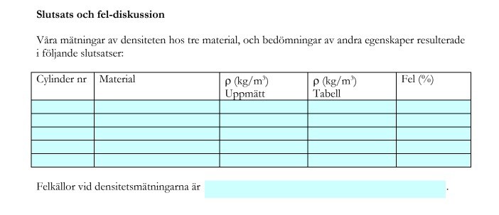 Jag skall genomföra en laboration imorgon där man försöker komma fram till vilken metall det är genom att mäta densiteten. Vad menas med "Fel %" i denna tabell? Står det för felmarginal av mätvärdena eller är det mer som felkällor som också står nedanför?
