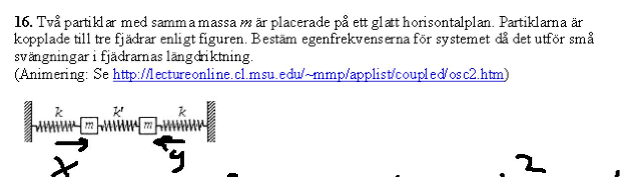 Jag antar att fjädrarna har sin naturliga ospända längd då x = y = 0. Energin som lagras i en fjäder är (1/2)k, där är längdförändringen från ospänd längd.