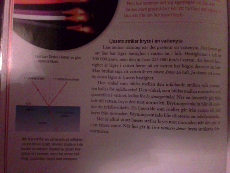 Laguna skrev:Kan du ta en bild på den sida i boken där brytning av ljus förklaras, så kan vi hjälpa till att göra förklaringen mer begriplig.