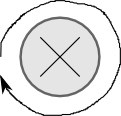 Rita en ledare och hur du tänker dig magnetfältet. Markera med pilar riktningarna på ström och magnetfält.