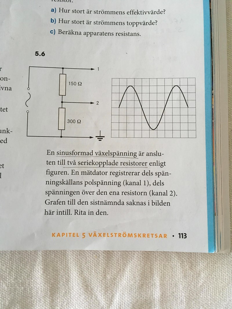 Jag minns att min lärare sa något om att potential i en växelströmskrets mäts på ett annorlunda vis. ++ eller - - på båda sidor, något som särskiljer dom från likströmskretsar. Jag kommer helt enkelt inte ihåg. Hur blev kanal 1, U(150+300/450) och två U(300)/(450)? Jag har gjort uppgiften förut.