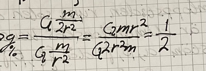 Hej, följande uppgift ska man beräkna hur många ggr större/mindre tyngdaccelerationen blir när jordens radie fördubblas. Jag löser uppgiften på ett rimligt sätt och får fram att tyngdaccelerationen halveras. Enligt svaret är B fel, och korrekta svaret är D. 2g, fattar ej varför.