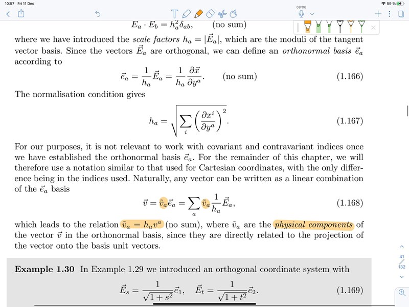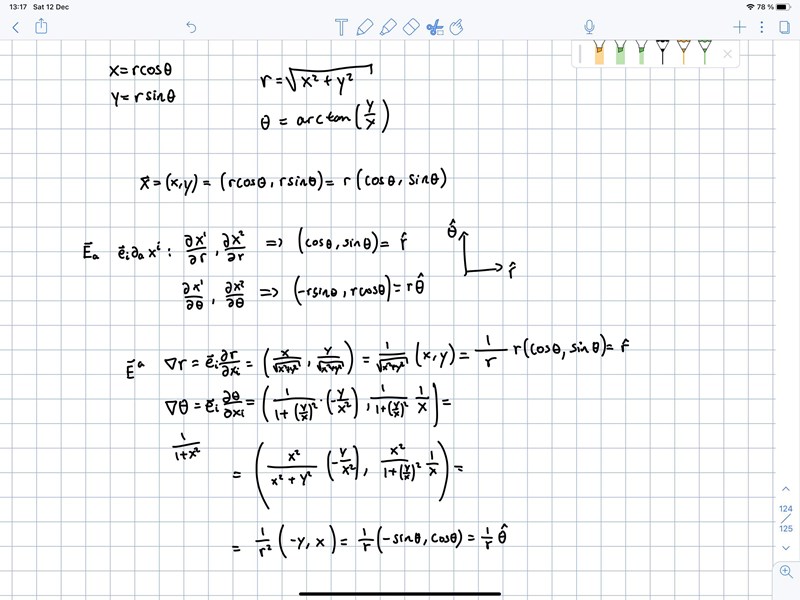 Zeshen skrev:Om (r, ) = så får vi ut hastigheten enklast i fysikaliska komponenter va? För || = och vi kan kolla på komponenterna direkt. Hur räknade du ut basen för vektorn i de olika baserna? och är normalbasen samma sak som dualbasen?