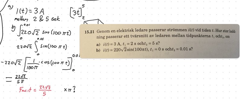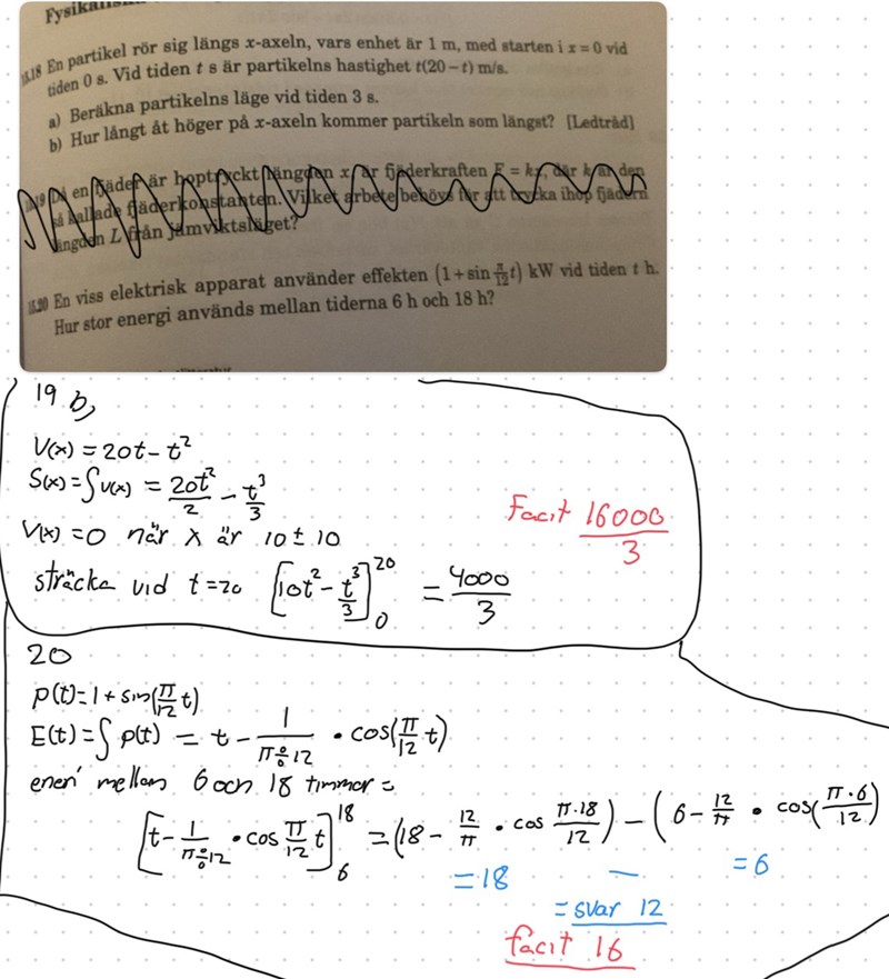 Hej jag har problem att få till två liknande uppgifter (och därför i samma fråga) och gör förmodligen samma fel, bifogar en bild på uppgift och min lösning samt rätt svar i rött