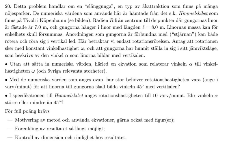 Enligt lösningen till uppgiften är . Någon som förstår varför centripetalkraften skulle bero på tan? Sin skulle jag ha resonerat mig till, eftersom det finns ett max-värde då. Antar att jag har missat något. Tacksam för svar