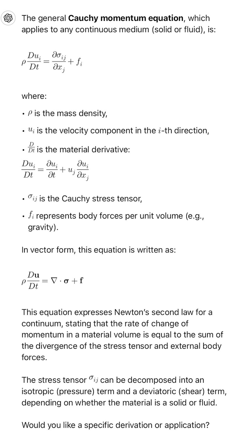 Vid jämvikt uppfyller vätskan Cauchys ekvationer på formen