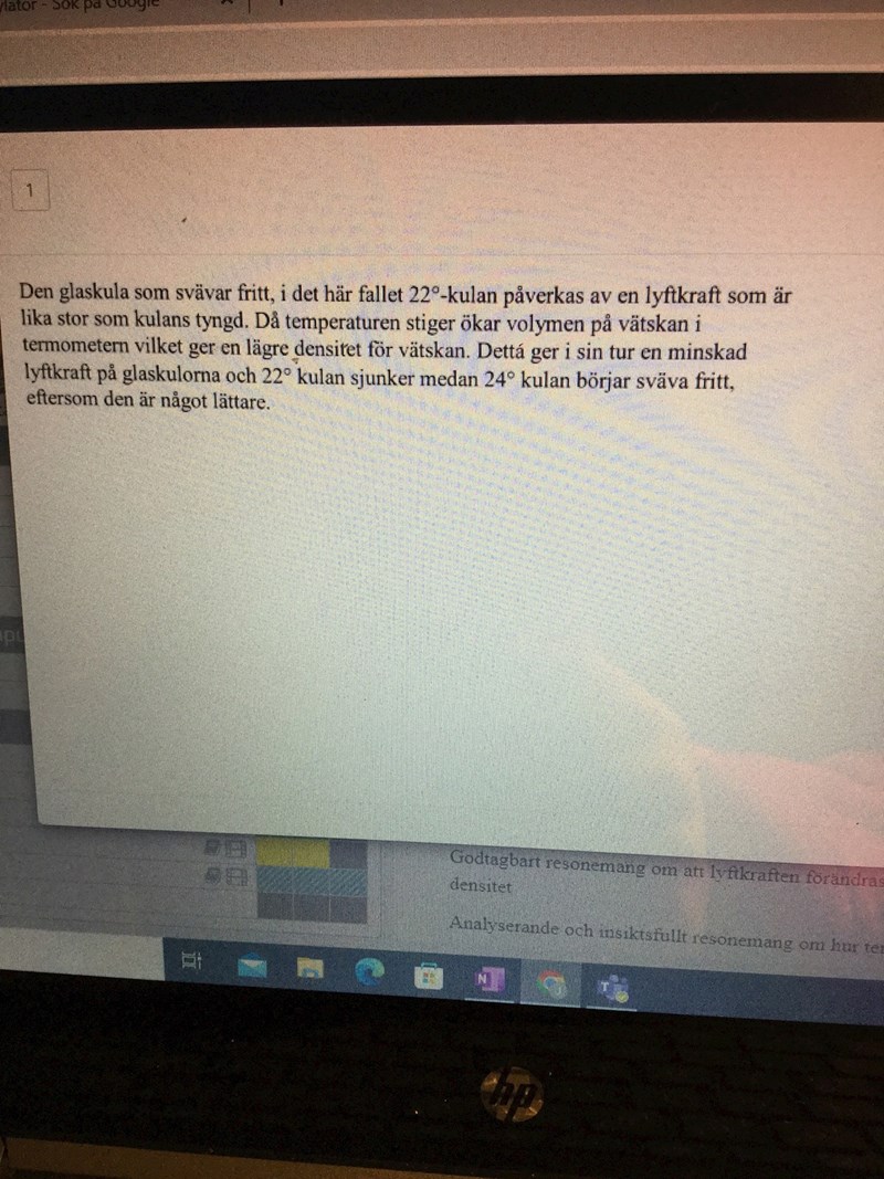 Eller, med andra ord: Kulan svävar fritt om det undanträngda vattnet har samma vikt som kulan, dvs kulan har samma medeldensitet som vattnet. Och vattnets densitet beror i sin tur på temperaturen.