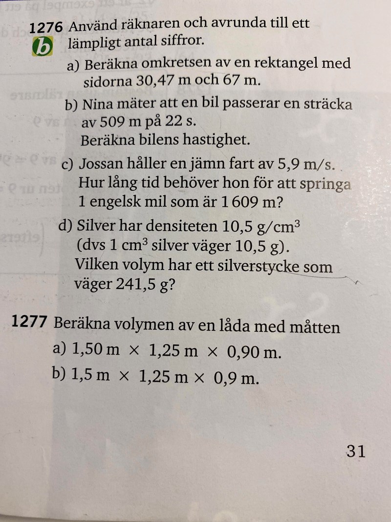 Loryar skrev:Jag har löst fråga 1276 c). Men min fråga är hur ska jag skilja sen när det blir prov. Mellan att ange svaret beroende hur många gällande siffror och sedan avrunda. Det andra är att avrunda svaret utan att ta reda på antalet gälande siffror:)