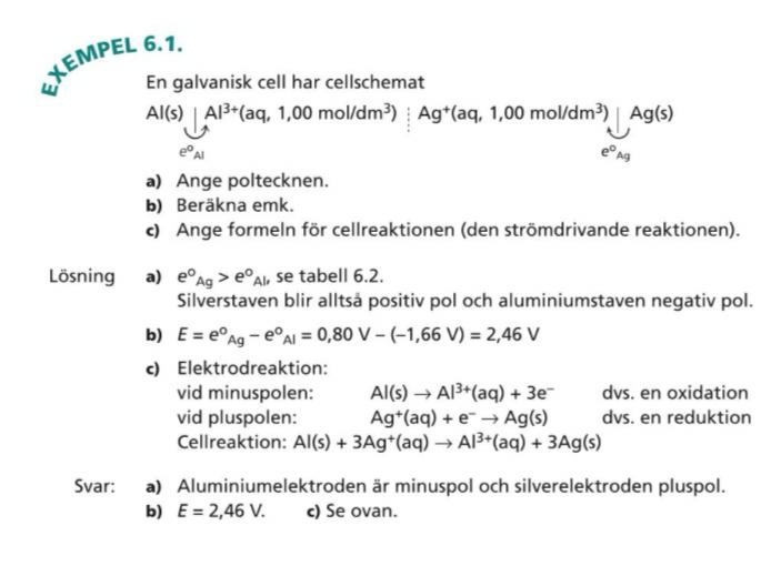 Varför är cellreaktionen från minuspol till pluspol? Alltså i c)