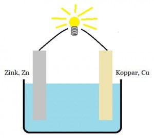 Galvaniskt element: Koppar och Zink i elektrolyt