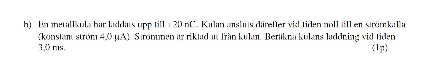 Så i uppgiften har vi "strömmen är riktad ut från kulan" då betyder det att elektroner kommer flyttar in i kulan. Och kulan har positiva laddning från början och elektroner göra att laddning blir negativa, därför ska vi har minustecken i svaret, eller hur?