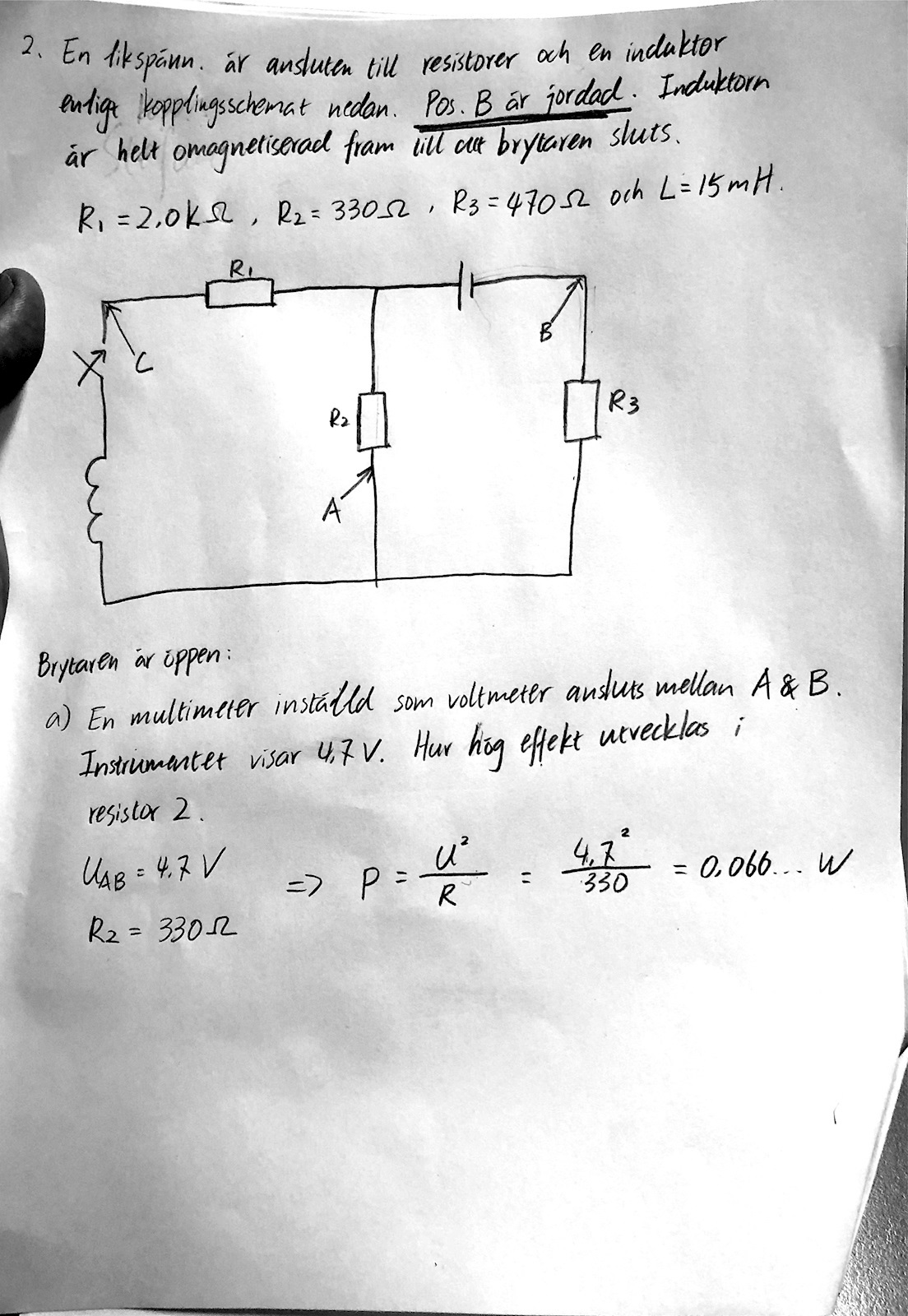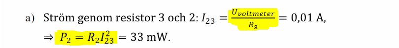 Därför måste man göra som facit, dvs beräkna strömmen genom R3, samma ström går genom R2
