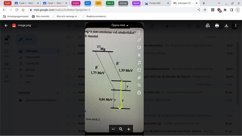 Tja, om energidiagrammet är skalenligt så är det den längsta pilen som har kortast våglängd.