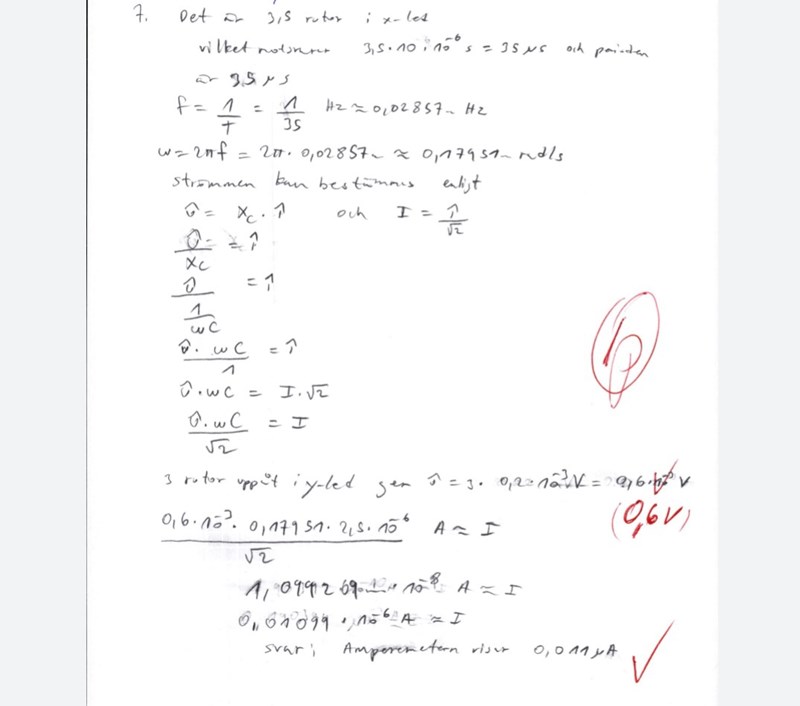 Aa juste jag ser att det står V på vänster sida och mV på höger sida, så då förstår jag att man ska ha avläst 0,6 V. Då är det bara den enda som gjorde att jag fick fel svar på strömmen eller?