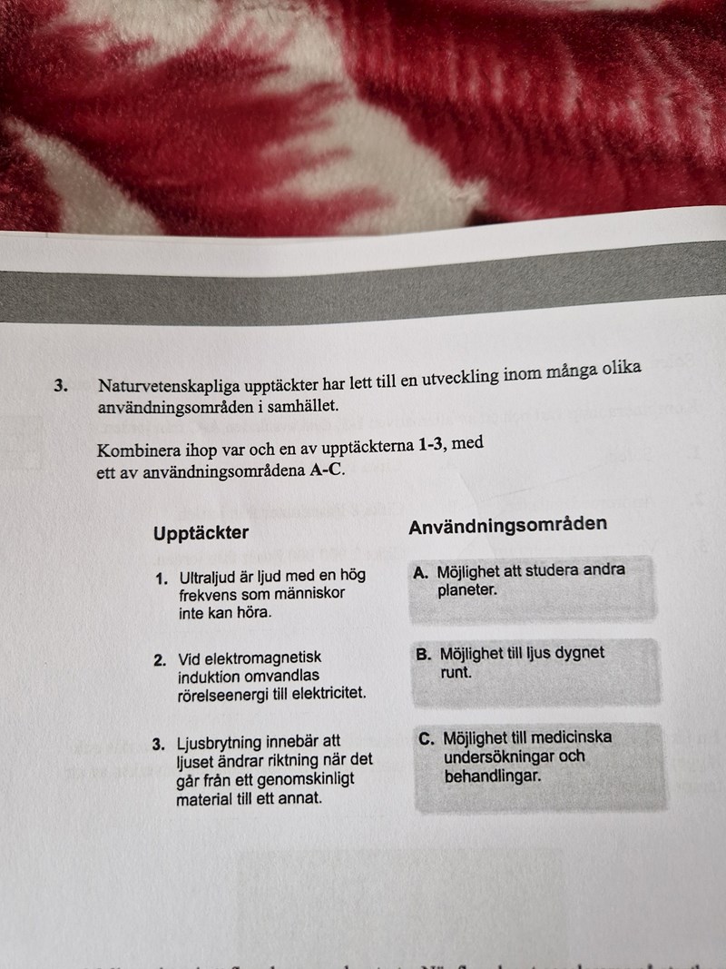 1. C. Ultraljud används för att kunna se fostret inuti mammans mage eller vid behandling mot njursten.