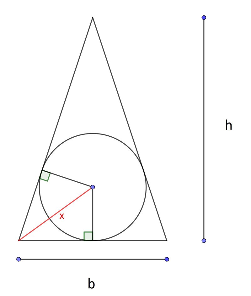 Jag tror att ett bra sätt att börja är att rita tre radier i cirkeln, en till varje kontaktpunkt på trianglens tre sidor. Du får då tre drakar som alla har två sidor som har längden som är cirkelns radie. Sen kan du använda detta för att räkna ut längderna på de andra sidorna i de tre drakarna. Du vet också att radierna möter sidorna i trianglen i räta vinklar.