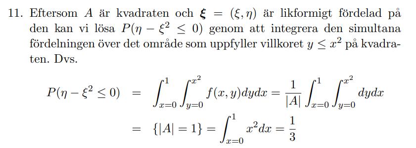 I detta fall är täthetsfunktionen likformig, vilket innebär att vi har en jämn vikt över hela ytan. Därmed räcker det med att bestämma arean av ytan. Mer specifikt behöver du bestämma andelen av totala arean som täcks av händelsen eta-xi2<0