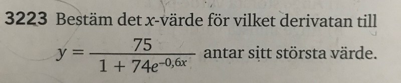 - Även om det fanns lösningar till ekvationen skulle ju derivatan i så fall vara odefinierad vid det -värdet. Däremot skulle det finnas värden som låg nära detta -värde vilka skulle ge stora värden på derivatan. Dock skulle man ju då kunna finna oändligt stora värden på derivatan, och då skulle uppgiften bara vara trams.