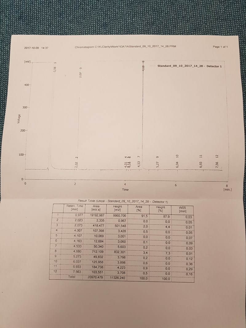 Vet du vad som ingår i ditt standardprov? Du bör ha fått en lista i samband med labben.