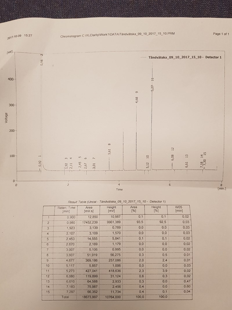Det som ingår är acenton, jag har inte fått någon lista. Jag vet inte hur gaskromatografi funkar.