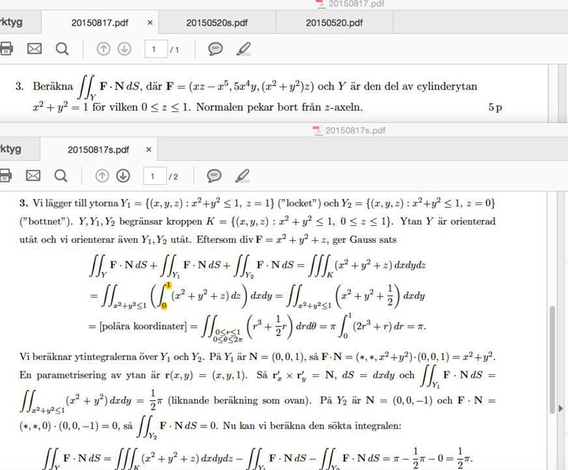 AlvinB skrev:Din metod är faktiskt rätt bra i detta fall om vi korrigerar några saker. Det första är att du slarvar lite med gränserna. Det är ju så att kroppen går från ytan upp till planet . Det ger gränserna:
