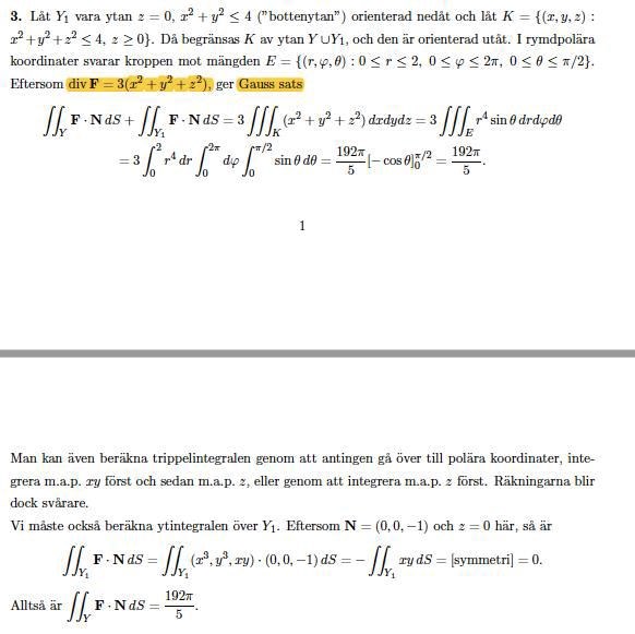 Jroth skrev:För att få använda Gauss' sats måste begränsningsytan till volymen vara sluten och ha en utåtriktad normal.
