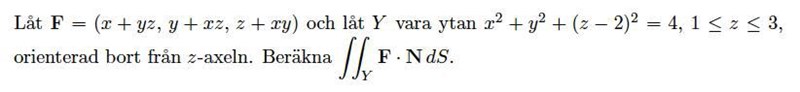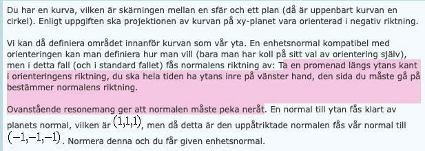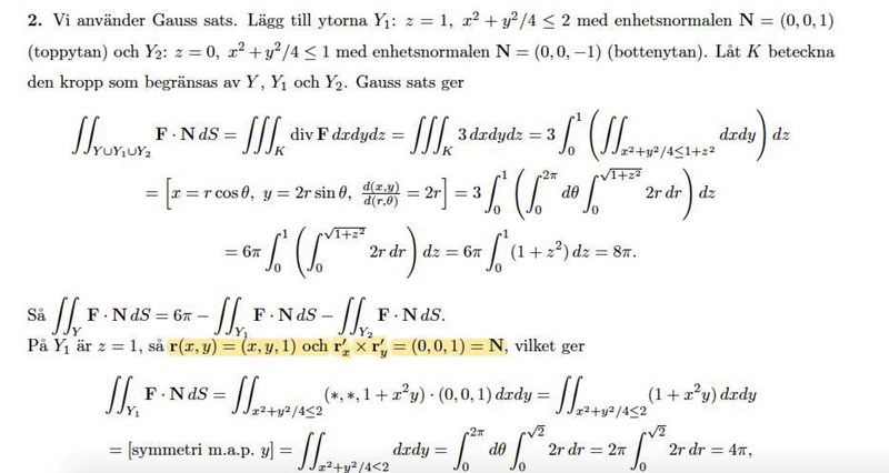- eller om man har en halvsfär med - i då Gauss sats tex - då lägger vi ju till ett 'botten' i varje uppg jag sett på alla mina gamla tentor så har man alltid N=(0,0,-1) det är inget jag har tänkt på förens nu. Varför är N=(0,0,-1) i det här fallet? och inte positiv? Är det för att i uppg står det, utåtriktad normal? eh nej. nu såg jag att i bägge fallen så var de oriternade bort från z-axeln, så det kan inte heller va fallet.