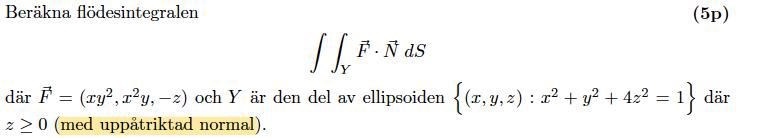 Smaragdalena skrev:Y är en del av en ellipsoid med normalen riktad uppåt, locket har normalen neråt. Som vanligt: Rita!