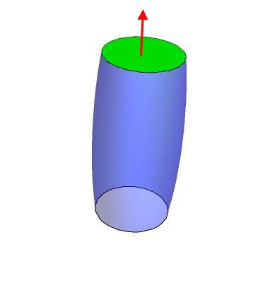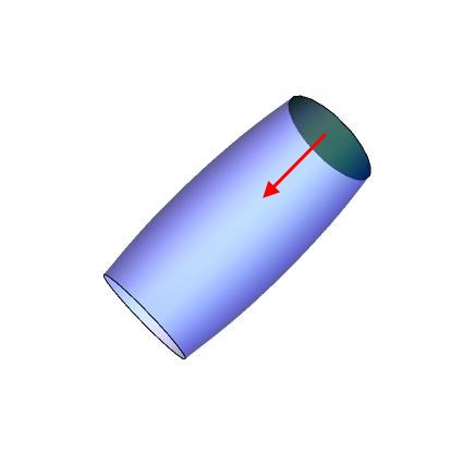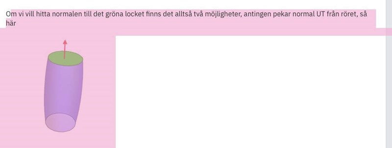 Om vi vill hitta normalen till det gröna locket finns det alltså två möjligheter, antingen pekar normal UT från röret, så här