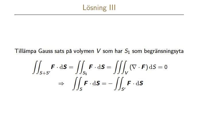 Trippelintegralen i den inklistrade bilden är felskriven; det ska stå och inte . Om divergensen är konstant () över hela kroppen så blir trippelintegralen lika med