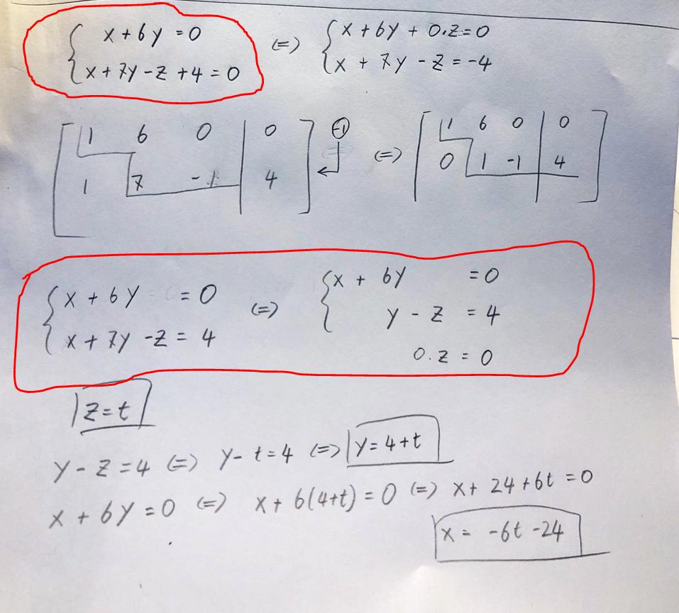 De fortsatte med matrisen och subtraherade 6 gånger rad 2 från rad 1. Du har gjort samma sak men med variabler.