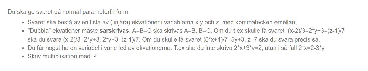 Genom Gauelimination och lite omskrivning fick jag den parametersform för linje.