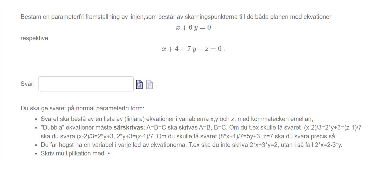så fick jag fram parametersform till linje som består av skärningspunkterna.