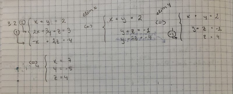 Det är någonstans jag inte förstår metoden för ekvationsystem av 3x3. Försökte lösa detta ekv.system: