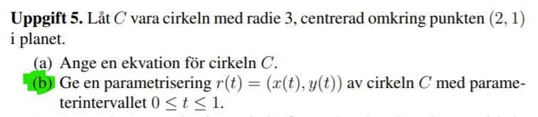 förstår inte riktigt hur jag ska parametrisera cirkeln C i uppgift a)