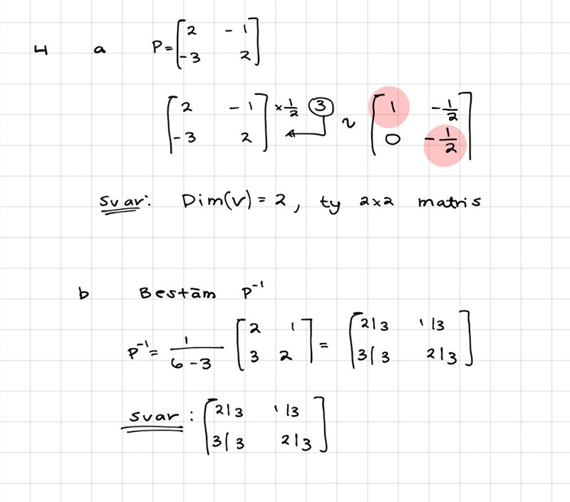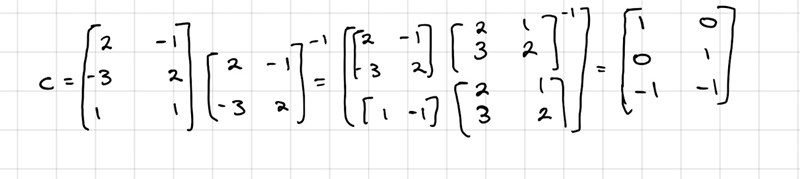 Jag förstår inte riktigt hur man ska göra fråga C, eller hur jag ska börja. Om man sätter exempelvis B=[2,-3], [-1,2] och beräknar då P^-1B=C=[1,0], [0,1], men vad blir då V?