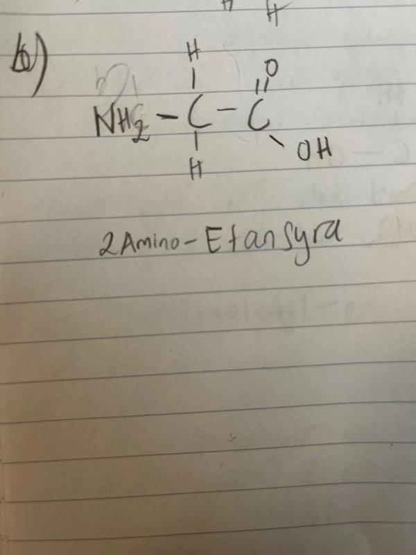 men i facit stod det endast Aminoetansyra. Vart har jag gjort fel?