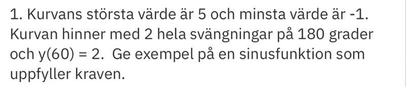 Jag vet inte hur jag ska tillämpa ”kurvan hinner med 2 hela svängningar på 180 grader”. vet inte vad jag ska göra med perioden, dvs hur jag hittar perioden).